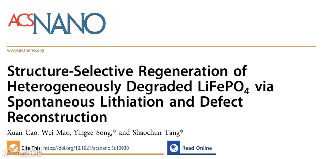 Xuan Cao, Wei Mao, Yingze Song,* and Shaochun Tang*. Structure-Selective Regeneration of Heterogeneously Degraded LiFePO4 via Spontaneous Lithiation and Defect Reconstruction, ACS Nano 2025,