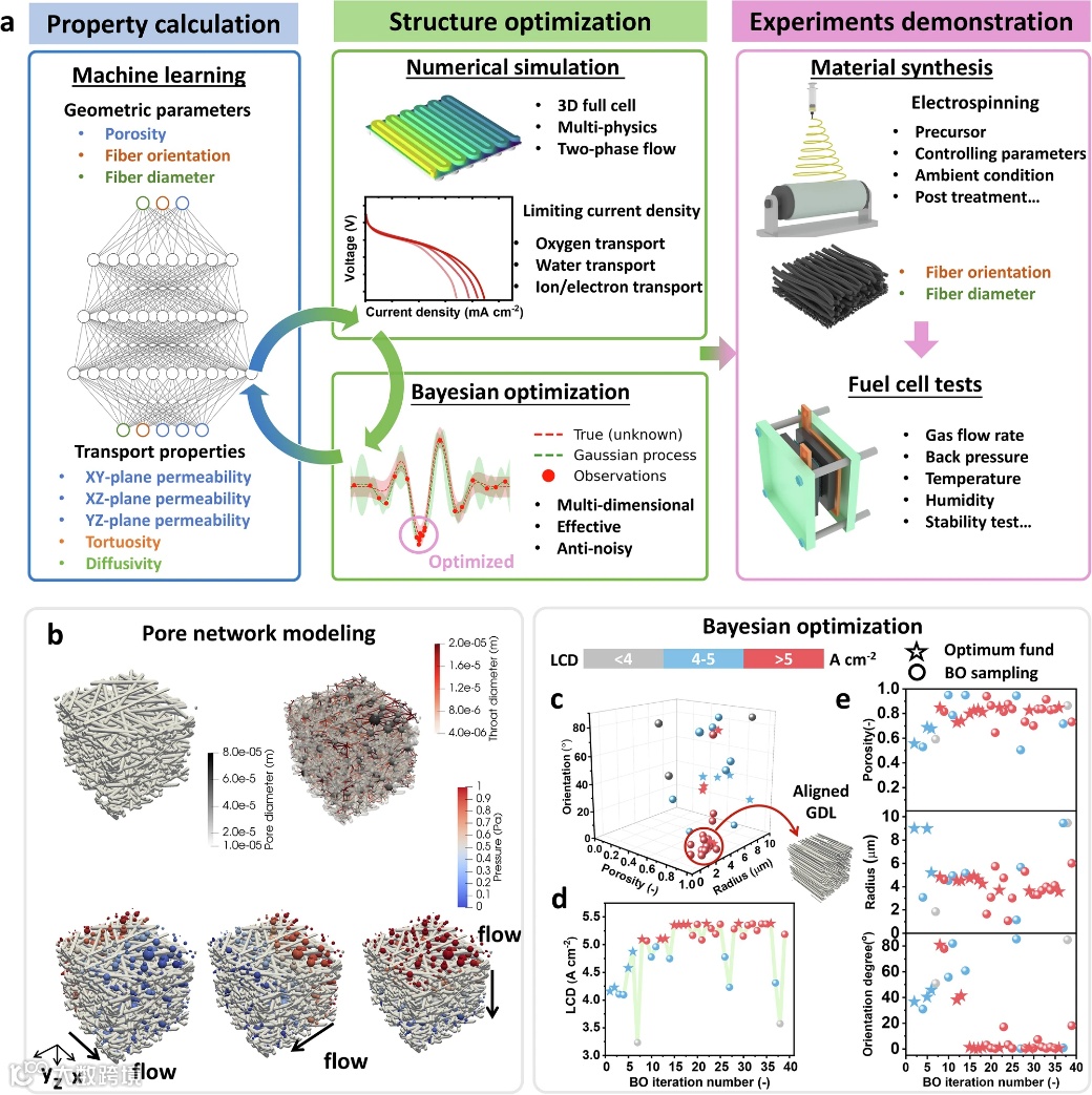 基于贝叶斯机器学习的人工智能指导高性能燃料电池有序气体扩散层设计