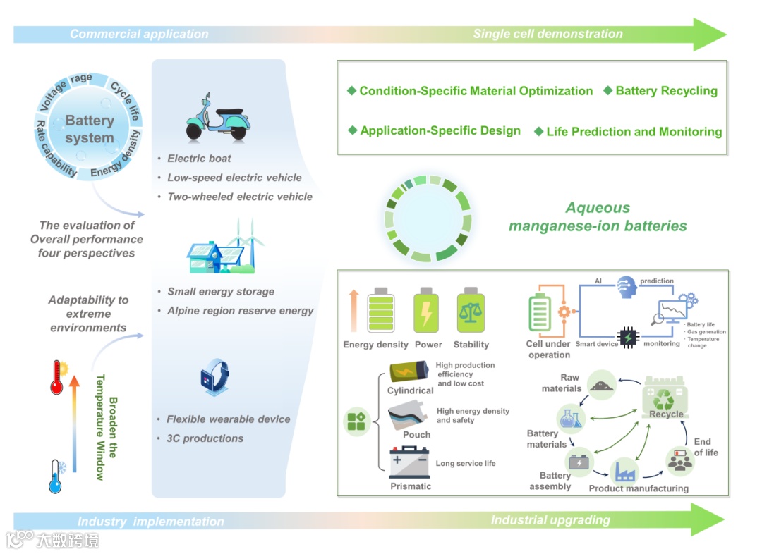 图9. AMIBs未来发展趋势。强调通过性能优化、环境适应性、智能诊断、降低成本和可持续回收策略从基础研究向商业应用的过渡。