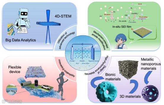 (3) 传统的刚性ZIHSs应用受限,未来面向可穿戴设备应用,需优化凝胶电解液的机械强度/离子迁移率平衡,并通过工艺改进减少电极材料缺陷,提升柔性;