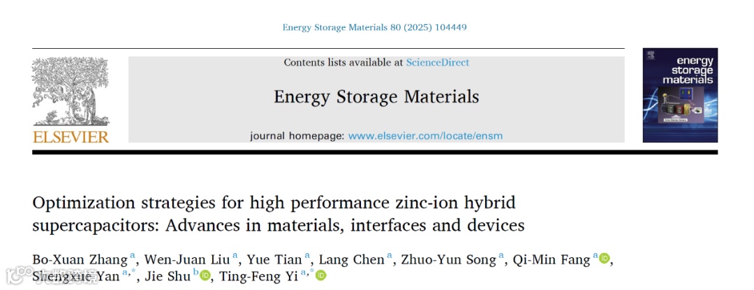 近日,来自东北大学秦皇岛分校的伊廷锋教授和闫绳学博士在国际知名期刊Energy Storage Materials上发表题为“Optimization Strategies for High Performance Zinc-Ion Hybrid Supercapacitors: Advances in Materials, Interfaces and Devices”的综述文章。该综述文章回顾了锌离子超级电容器发展历程与研究进展,并针对电极材料性能的优化提出了纳米化、多孔化、复合化三个方向的改性框架,同时并针对Zn枝晶及HER副反应阐述其生成机理以及相应的界面修饰策略。