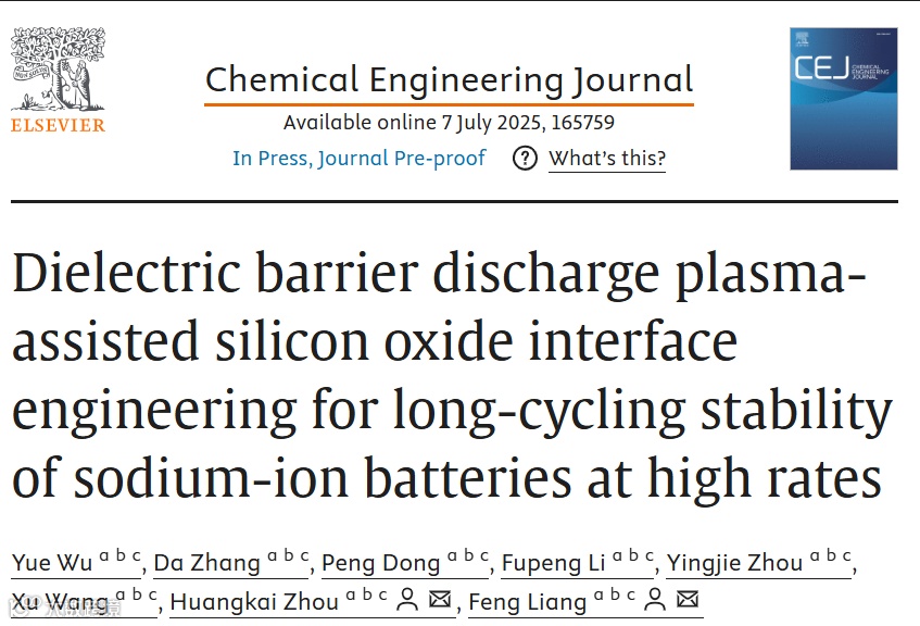 介质阻挡放电等离子体辅助氧化硅界面工程助力钠离子电池高倍率长循环稳定性