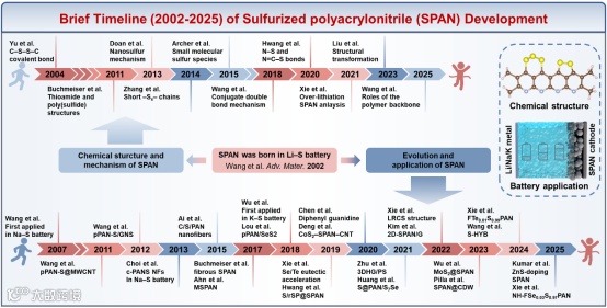 图2. 过去二十多年(2002-2025 年)SPAN 正极材料的关键研究时间线。