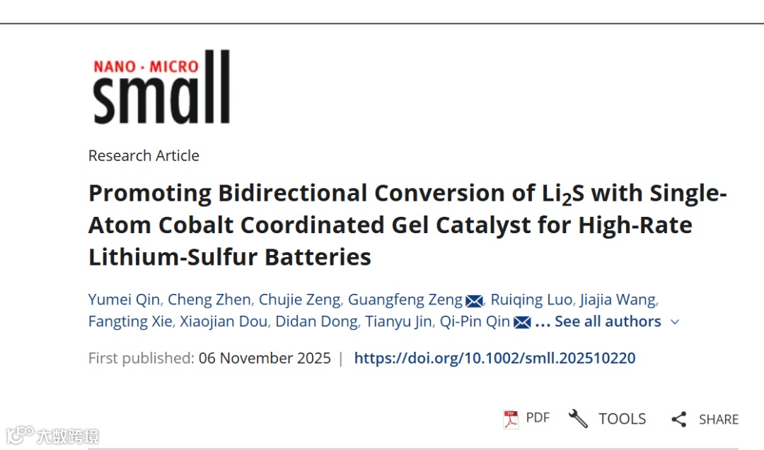 近日,玉林师范学院的曾广锋副教授,在国际知名期刊Small上发表题为“Promoting Bidirectional Conversion of Li2S with Single-Atom Cobalt Coordinated Gel Catalyst for High-Rate Lithium-Sulfur Batteries”的观点文章。该观点文章提出了一种合成高效锂硫电池钴单原子催化剂的新策略。通过同步辐射,球差电镜技术分析了钴单原子催化剂的原子分散状态及配位环境;并通过理论计算证实Co-N5位点未填充的3d轨道通过Co-S结合增强了d-p杂化,促进了Li2S2和Li2S之间的双向转化。