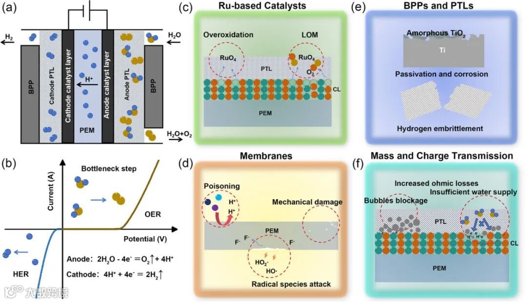系统总结了钌基催化剂、膜、多孔传输层和双极板的稳定性提升策略。