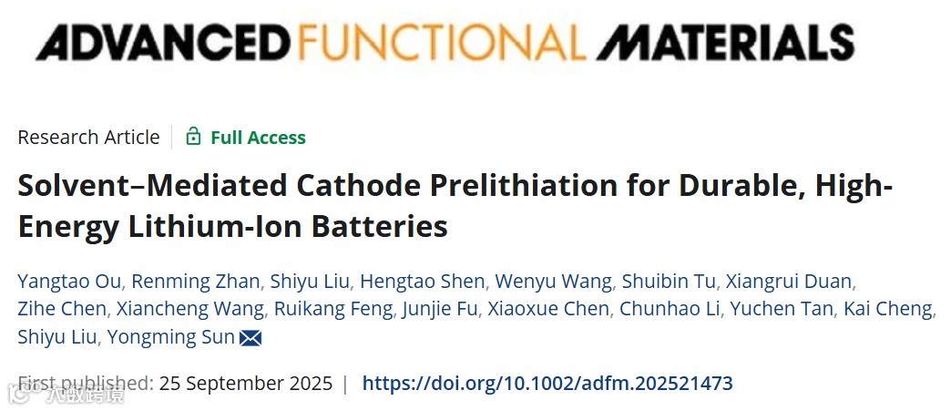 本研究通过溶剂介导的正极预锂化实现了材料、结构与界面三重协同:低浓度Li+的温和动力学避免过度锂化;简单接触工艺实现可控、均匀的表面锂化;稳定的LiF无机界面保障高电压与长寿命。该成果不仅补偿了硅基负极的初始锂损,更为新一代高能量密度、长寿命锂离子电池提供了工业化可落地的解决方案,并为多种正极材料的界面稳定化设计提供了可借鉴的范式