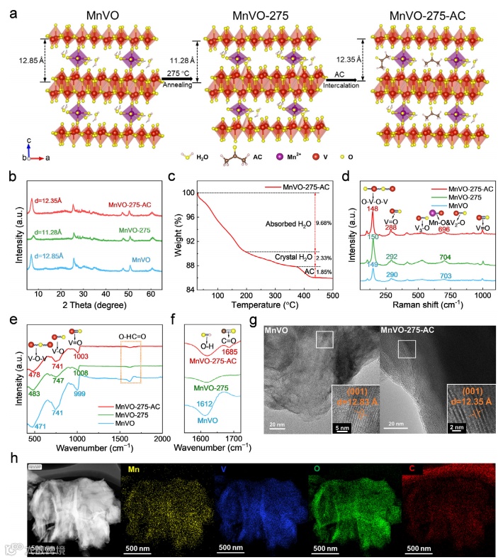 图3:MnVO-275-AC 阴极的自适应存储机制研究。