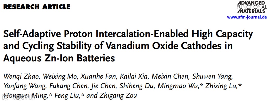 自适应质子嵌入机制实现水系锌离子电池钒氧化物正极的高容量与循环稳定性