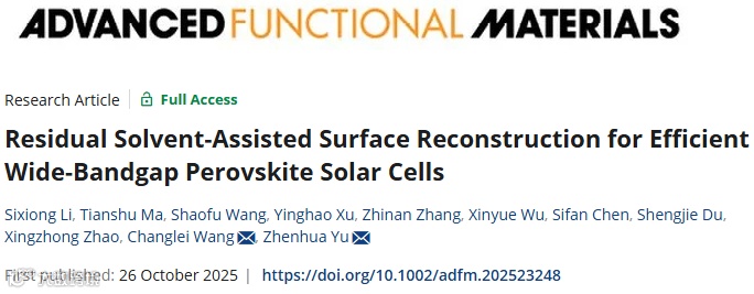 残留溶剂辅助表面重构实现高效宽带隙钙钛矿太阳能电池