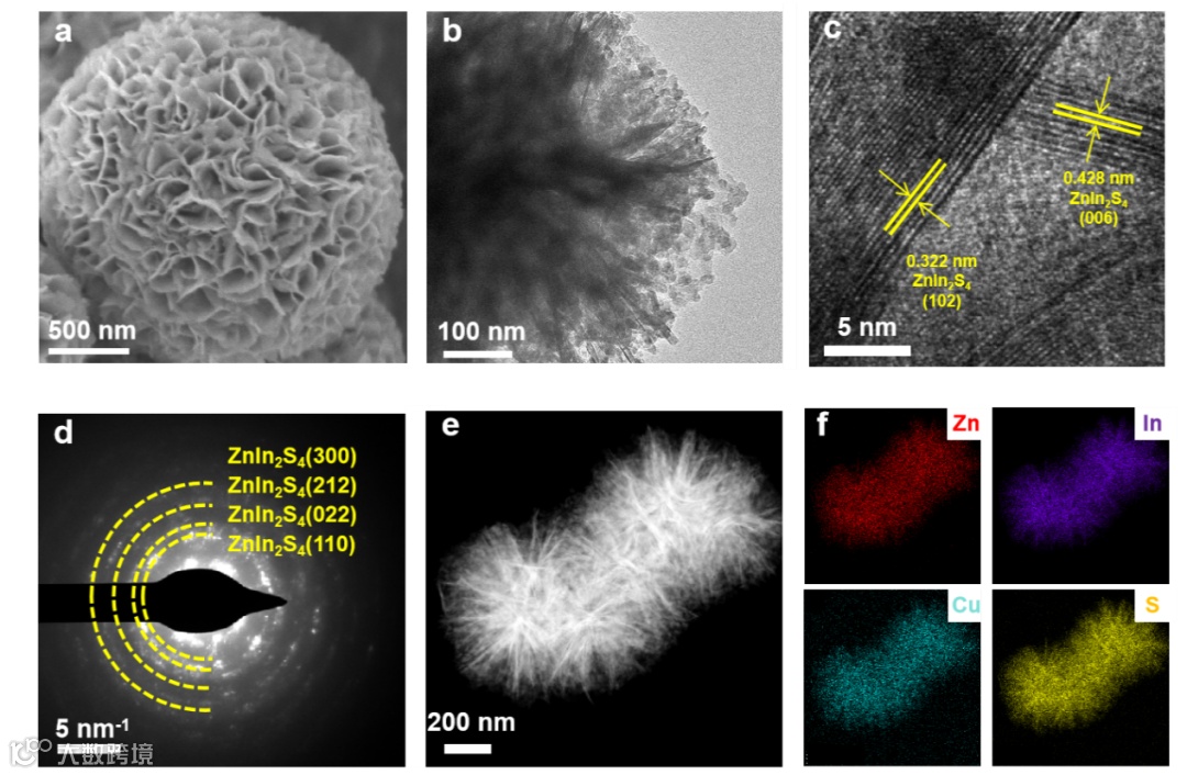 要点一:Cu-ZnIn2S4表现出由多孔纳米片组装而成的微球结构