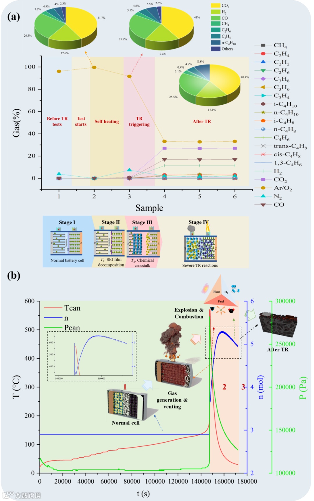 要点一:大容量商用锂离子电池热失控多维参量演化机制及动态产气行为解析