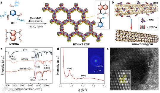 图1. 层间氢键BTH-NT COF的结构与表征。