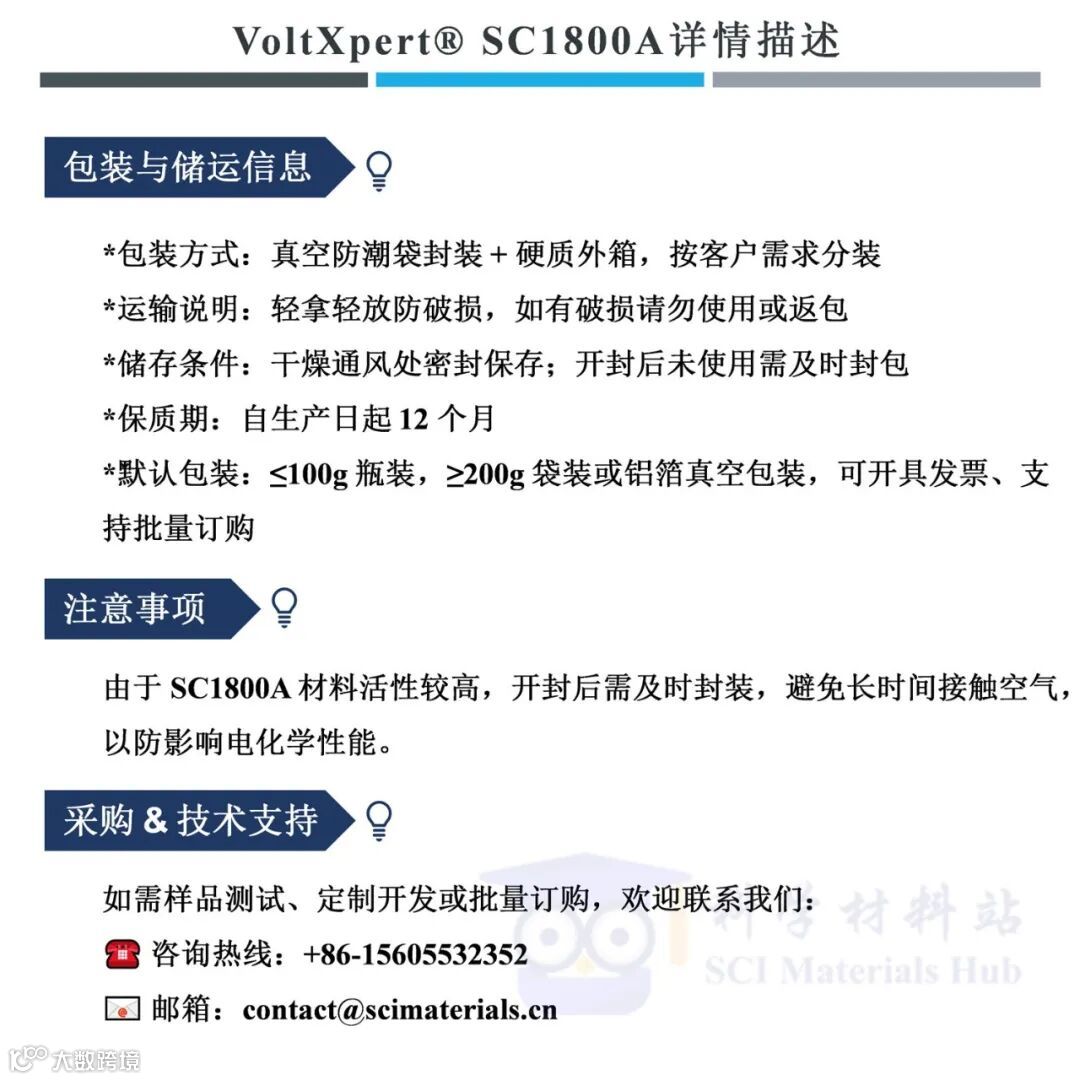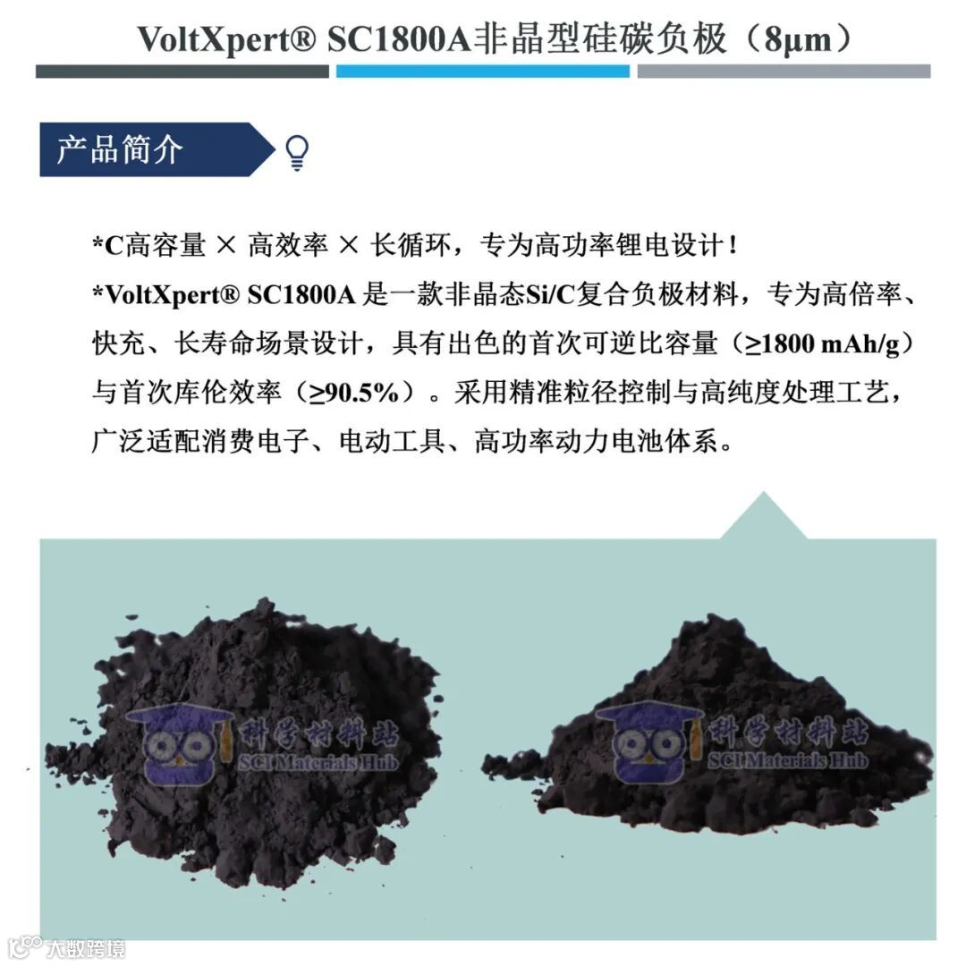 导读:VoltXpert® SC1800A 非晶型硅碳负极(8 μm)