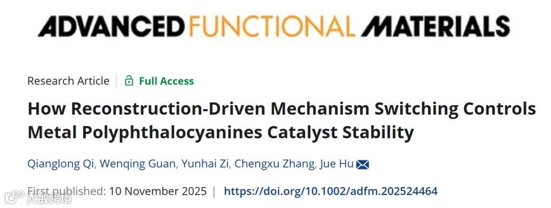 昆明理工大学胡觉教授在Advanced Functional Materials期刊上发表题为“How Reconstruction-Driven Mechanism Switching Controls Metal Polyphthalocyanines Catalyst Stability”的最新研究成果。在电催化析氧反应(OER)催化剂研究领域取得重要突破,揭示了金属酞菁催化剂中活性位点动态重构驱动反应机理转变并调控催化稳定性的核心规律。