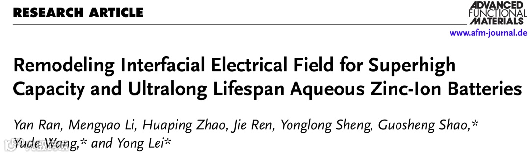 “Remodeling Interfacial Electrical Field for Superhigh Capacity and Ultralong Lifespan Aqueous Zinc-Ion Batteries”