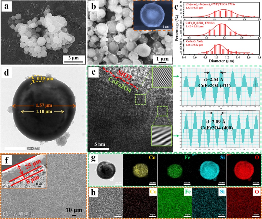 在对改性材料进行了详细的结构和形貌表征测试后,证明了CoFe2O4@SiO2 YSHSJs蛋黄@蛋壳异质结构球形罐的成功构建。