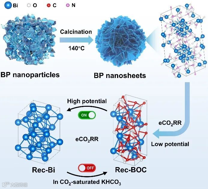 利用清洁可持续能源驱动的电化学二氧化碳还原反应(eCO2RR)是一项碳中和技术,能将CO2转化为化学品和燃料。它为同时实现可再生能源存储、CO2资源化利用以及高附加值产品生产这“三赢”目标提供了一条充满前景的路径。铋基材料因其对eCO2RR单一产物(甲酸或甲酸盐)的高选择性、高成本效益及环境友好性而备受关注。因此,开发用于高效eCO2RR的铋基催化剂具有深远的实用和经济价值,但其大规模工业应用仍面临严峻挑战:1、活性窗口与选择性难以兼顾。铋基催化剂在特定电位下对甲酸盐具有卓越选择性,但由于其活性位点有限,在较宽的电位窗口内维持高选择性仍很困难。而宽电位窗口对于抑制析氢副反应、优化反应中间体的吸附/脱附动力学以及降低过电位至关重要。2、稳定性与耐久性不足。在实际应用中,耐久性是主要瓶颈。在长时间运行过程中,铋基催化剂会发生不可控的重构,导致成分降解、结构坍塌和电化学寿命缩短。3、机理研究复杂化:这种动态重构现象掩盖了真实的活性位点和反应路径,使反应机理的研究变得复杂。综上所述,要实现铋基催化剂同时具备高活性、宽电位窗口适应性和长寿命耐久性的目标,实现可控重构并清晰理解其重构机制至关重要。这是当前该领域研究的核心挑战与未来发展方向。