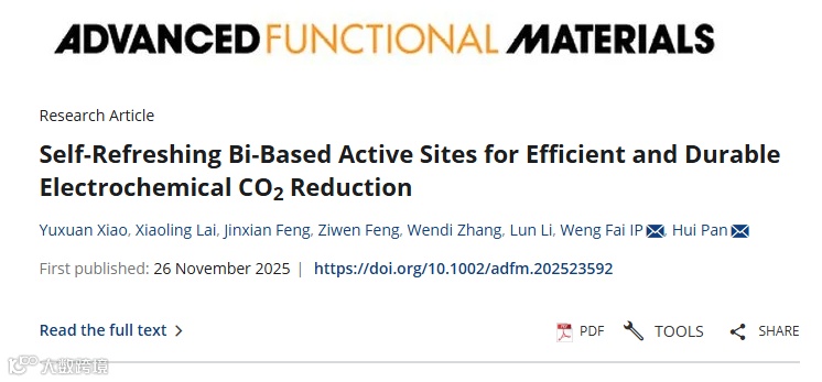 Yuxuan Xiao, Xiaoling Lai, Jinxian Feng, Ziwen Feng, Wendi Zhang, Lun Li, Weng Fai IP*, Hui Pan*, Self-refreshing Bi-based active sites for efficient and durable electrochemical CO2 reduction, Adv. Funct. Mater., 2025, e23592.