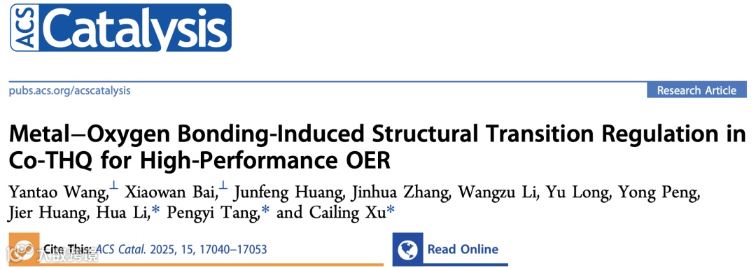 近日,兰州大学徐彩玲教授、李华高级工程师联合中国科学院上海微系统与信息技术研究所青年研究员唐鹏翼,在析氧反应(OER)电催化剂设计领域取得重要进展。研究团队提出了一种“金属–氧键诱导的结构转变调控”新策略,并在二维导电金属有机框架(Co-THQ)中引入原子分散的钌(Ru),实现了在碱性条件下的高效稳定催化。该催化剂通过强化Co/Ru–O相互作用,显著抑制了Co-THQ在电化学条件下的过度重构,同时促进高价Co物种的生成,进而提升了催化剂的OER活性和稳定性。在1M KOH中,Ru–Co-THQ在10 mA·cm-2电流密度下的过电位低至261 mV,并稳定运行超过300小时。组装为膜电极后,该催化剂在恒电流密度250 mA·cm-2下保持约1.57 V的反应电压,稳定运行超过100小时,表现出优异的电解水实用性能。结合原位光谱和密度泛函理论计算,研究揭示了Ru通过增强Co/Ru–O键强度和优化电子结构,有效降低了速率决定步骤的自由能垒,加速了反应动力学。该成果为MOF基催化剂的稳定化与高效化提供了新的设计理念,并有望推动其在水分解、金属空气电池等清洁能源体系中的应用。相关研究成果以“Metal–Oxygen Bonding-Induced Structural Transition Regulation in Co-THQ for High-Performance OER”为题,于2025年9月发表于《ACS Catalysis》杂志。