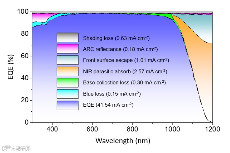 图5. 外量子效率(EQE)光谱和短路电流(JSC)损耗分析