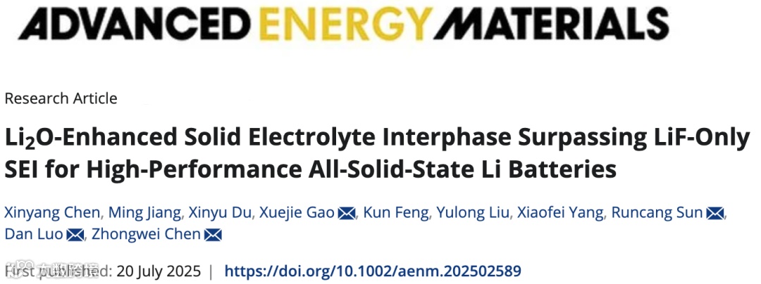 Li₂O增强的固态电解质界面层超越仅含LiF的SEI实现高性能全固态电池