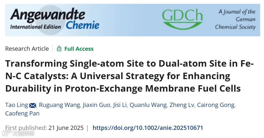 Fe-N-C催化剂单原子位点转化为双原子位点策略提升质子交换膜燃料电池耐久性