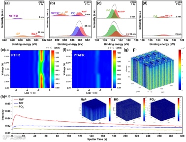 图 5. PTFR 和 PTAFR组装的钠金属电池正负极界面成分分析