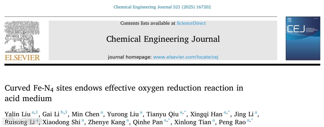 近日,海南大学饶鹏副研究员团队在Chemical Engineering Journal上发表题为“Curved Fe-N4 sites endows effective oxygen reduction reaction in acid medium”的研究工作。该工作通过构建一种原子级弯曲的Fe-N4活性位点,在酸性介质中实现了优异的ORR催化活性和稳定性。