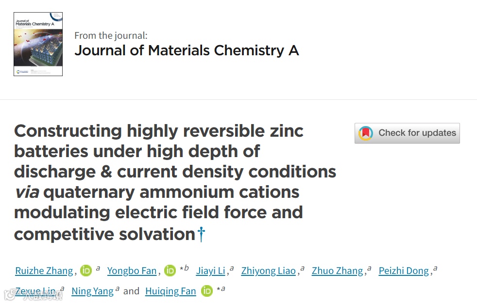 引入季铵阳离子构建高稳定可深度放电充电的水系锌电池