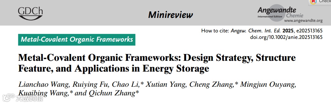 L. Wang, R. Fu, C. Li, X. Yang, C. Zhang, M. Ouyang, K. Wang, Q. Zhang, Metal‐Covalent Organic Frameworks: Design Strategy, Structure Feature, and Applications in Energy Storage. Angew. Chem. Int. Ed., 2025, e202513165. DOI: 10.1002/anie.202513165