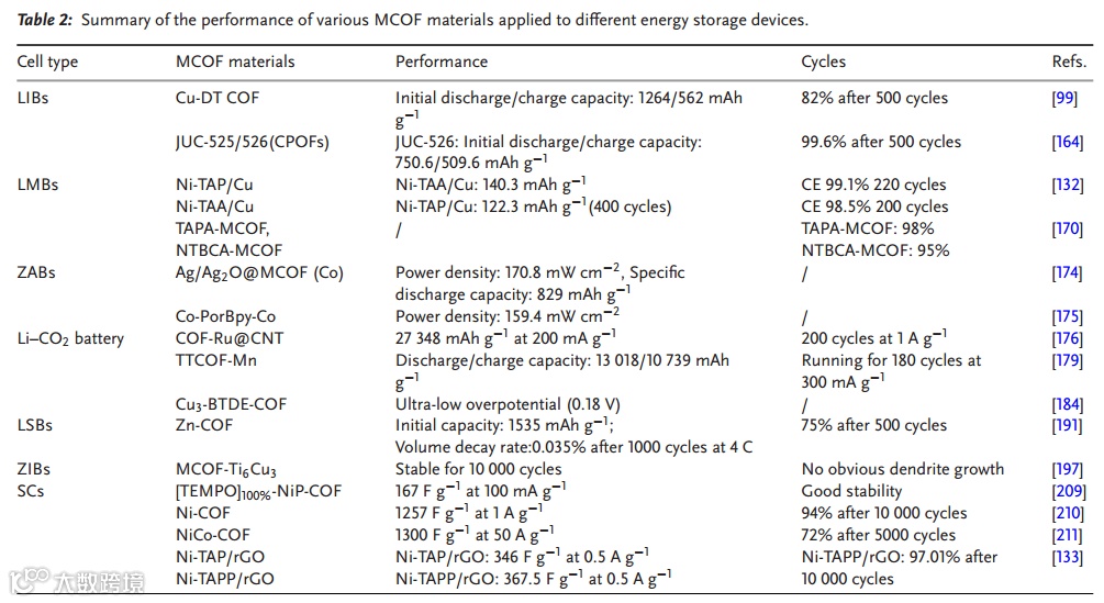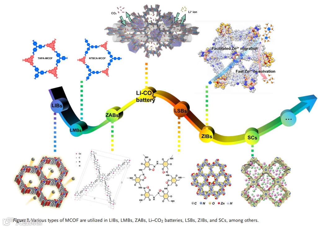 该综述详细展示了MCOFs在多种储能系统中的具体应用与性能优势: