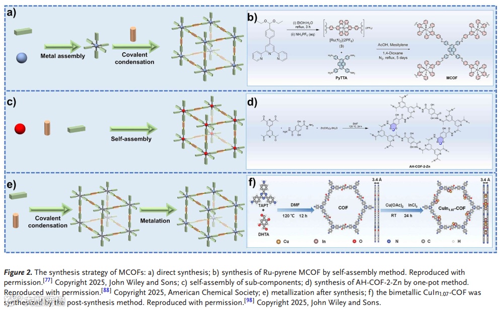 后合成金属化法:先合成COF结构,再引入金属离子进行配位或负载,具有较好的通用性和后调控能力,但金属分布均一性较难控制。