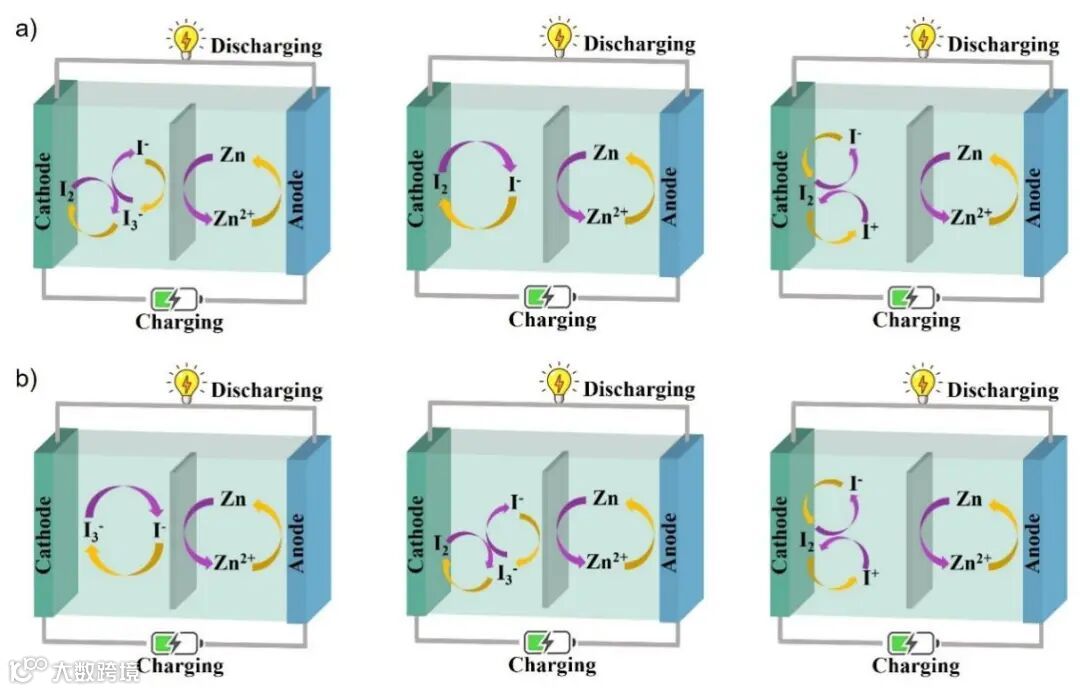 图4. Zn-I2电池中碘还原机制的示意图。
