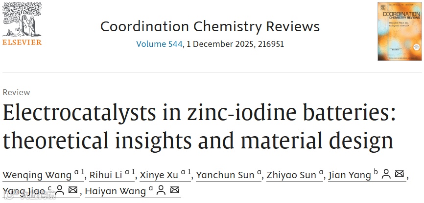 近日,来自浙江师范大学的王海燕副教授与金华高等研究院杨剑博士和浙师大焦杨副教授合作,在国际知名期刊Coordination Chemistry Reviews上发表题为“Electrocatalysts in zinc iodine batteries: theoretical insights and material design”的综述。该综述从理论研究到催化剂合成的各个方面,系统梳理了当前Zn-I2电池电催化剂的研究现状和进展。