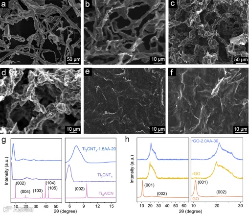 图2. 纤维状 Ti3CNTx 和 rGO 的形貌与结构表征