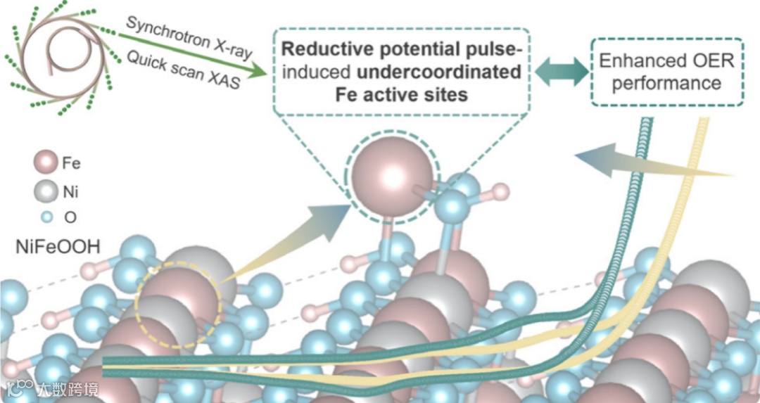 图1. 还原脉冲电位诱导产生的欠配位铁位点增强镍铁羟基氧化物的OER电催化活性。