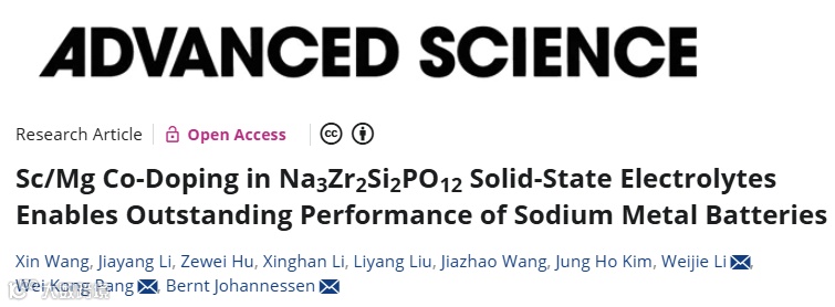 Sc/Mg协同共掺杂Na3Zr2Si2PO12固态电解质实现高性能钠金属电池