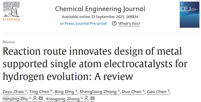 近日,来自南京航天航空大学的朱艳萍教授与张校刚教授合作,在国际知名期刊Chemical Engineering Journal上发表题为“Reaction route innovates design of metal supported single atom electrocatalysts for hydrogen evolution: A review”的综述文章。该文章综述了近年来金属支撑的单原子催化剂的各组分设计和反应路径之间的联系,同时汇总了近期的研究在反应活性和稳定性上的进展。