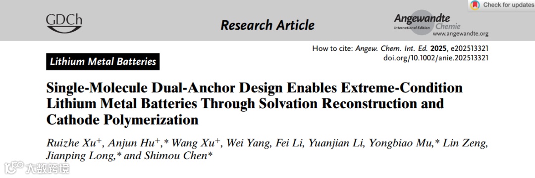 Single-Molecule Dual-Anchor Design Enables Extreme-Condition Lithium Metal Batteries Through Solvation Reconstruction and Cathode Polymerization, Angewandte Chemie International Edition (2025).