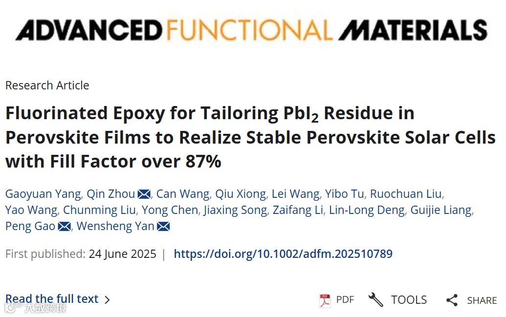氟化环氧树脂调控钙钛矿薄膜中残留PbI2,实现填充因子超过87%的稳定钙钛矿太阳能电池