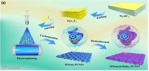 图1 MXene@MoSe2 PCNFs的合成过程示意图。