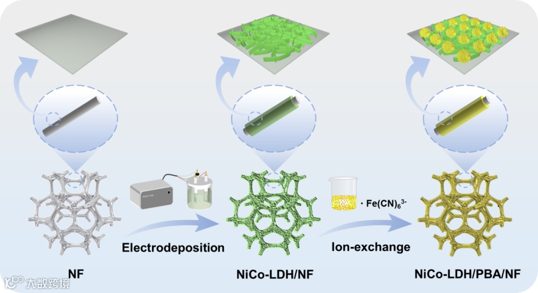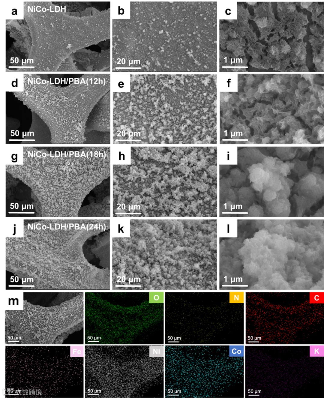 传统LDH材料通常存在活性位点不足和离子传输迟缓等弊端。PBA属于具有三维开放网络的金属有机骨架。开放的骨架结构赋予PBA较大的比表面积,这增强了电极和电解质离子之间的接触,促进了它们的离子/电荷转移特征和整体电化学性能。
