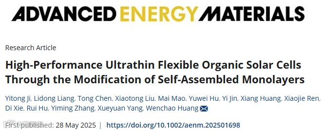 该研究成果以“High-performance Ultrathin Flexible Organic Solar Cells Through the Modification of Self-Assembled Monolayers”为题,发表于能源材料领域的国际高水平期刊《Advanced Energy Materials》。论文第一作者为武汉理工大学材料科学与工程学院博士研究生季亦同,通讯作者为黄文超教授。本研究为推动高性能柔性有机光伏器件的实际应用提供了重要的理论支持与技术路径。