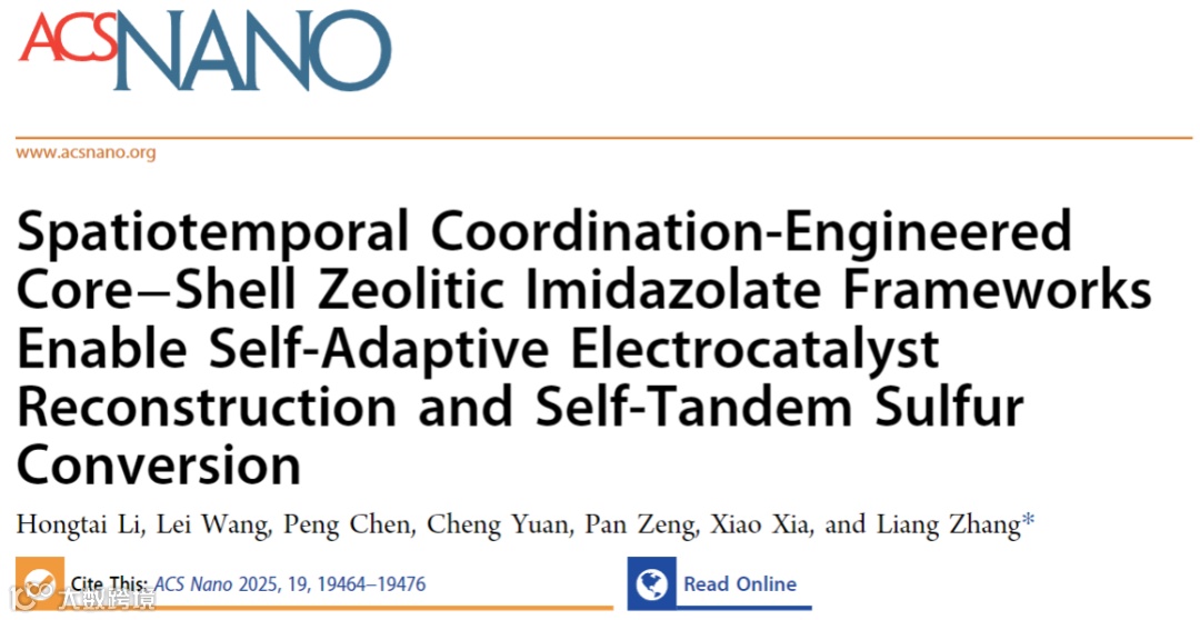 基于此,苏州大学张亮团队在国际知名期刊ACS Nano上发表题为“Spatiotemporal Coordination-Engineered Core−Shell Zeolitic Imidazolate Frameworks Enable Self-Adaptive Electrocatalyst Reconstruction and Self-Tandem Sulfur Conversion”的研究论文。该研究聚焦“时-空协调电催化“这一前沿领域,受到细胞膜分子识别与响应机制的启发,创新性地提出普适性核壳结构设计策略,成功实现了多硫化锂的精准自串联催化。基于核壳组分(Co、Zn)的定向构筑策略,系统阐明了ZIFs基电催化剂组成分布与动态重构行为的构效关联,并同步构建了动态演化过程的可视化表征技术。该方向的突破不仅依赖传统电子结构调控,更需将活性位点空间分布设计提升至与电子结构同等关键的维度——唯有统筹“电子态“与“空间序“的协同优化,才能从根本上解决“初始活性-循环稳定性”的矛盾,为锂硫电池实用化进程提供了新思路与技术路径。