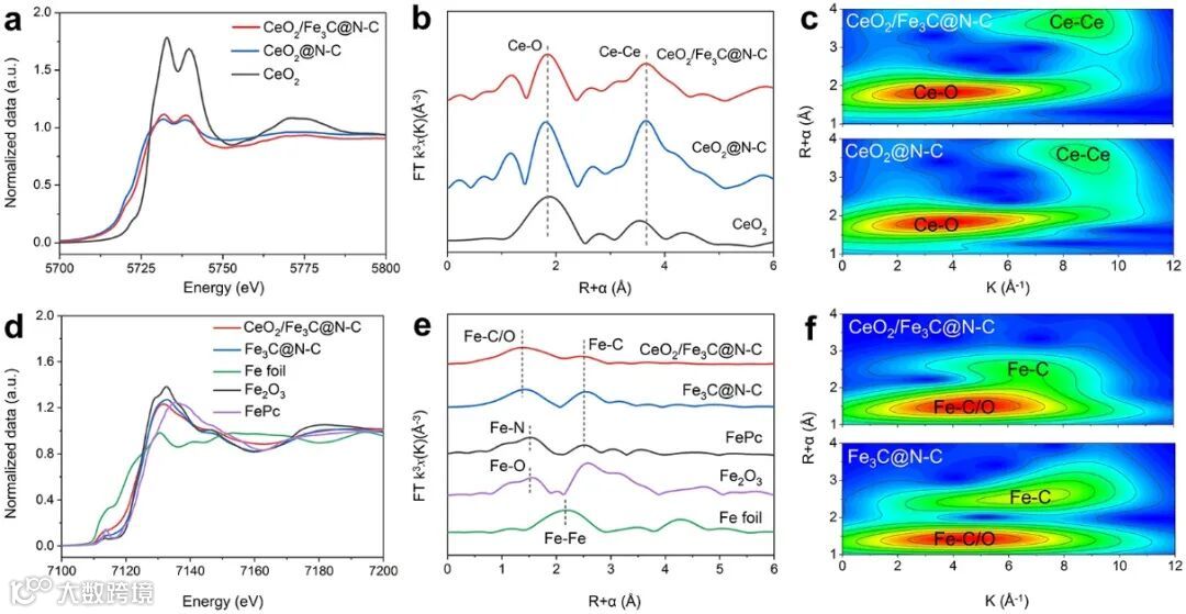 图2. CeO2/Fe3C@N-C及其他样品的X射线吸收光谱表征。