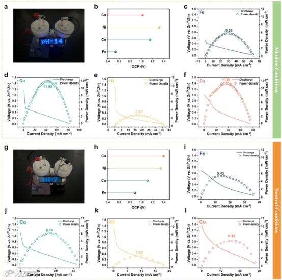 图5.金属泡沫电极的锌 - 硝酸盐(Zn-NO₃⁻)电池性能