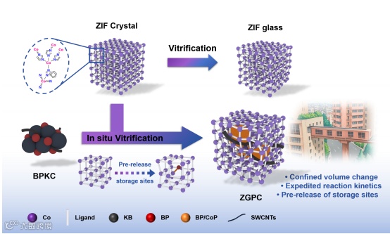 受重庆标志性的“轻轨穿楼”结构启发,通过原位玻璃化的合成策略设计构筑了一种 ZGPC 复合阳极材料。该材料结构为锂离子的传输与储存构建了一个高效稳定的“城市交通系统”,其具有三个关键的协同结构特征: