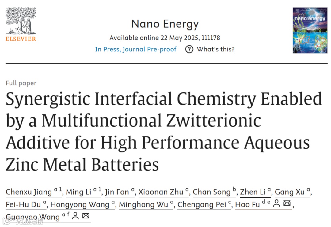 多功能两性离子添加剂实现的协同界面化学助力高性能水系锌金属电池