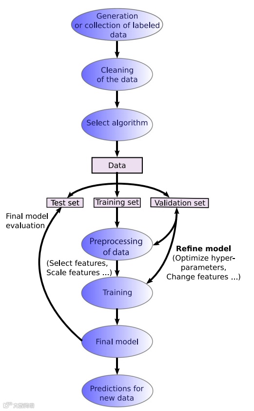 机器学习的分类:监督学习、无监督学习、强化学习。