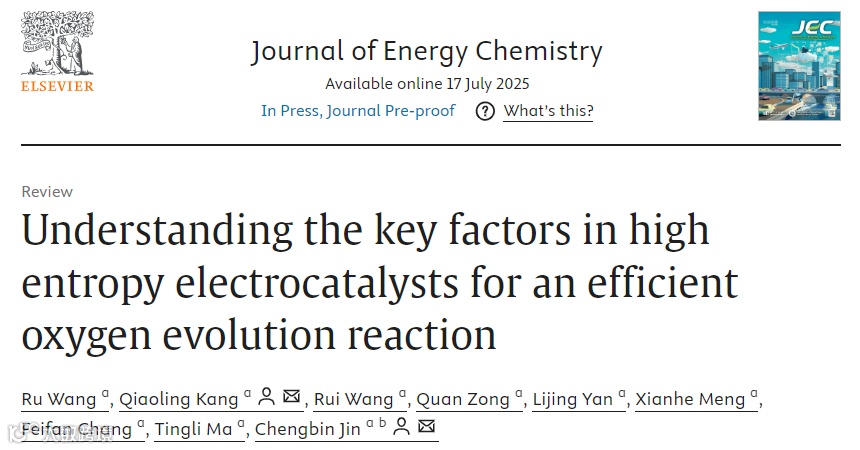 近日,来自中国计量大学材料与化学学院的青年教师康巧玲博士和金成滨研究员,在国际知名期刊Journal of Energy Chemistry上发表题为“Understanding the key factors in high entropy electrocatalysts for an efficient oxygen evolution reaction”的综述。在该工作中,作者首次系统地揭示了HEMs合成方法中的关键因素(包括络合剂、合成温度和煅烧气氛)对HEMs的结构和析氧反应(OER)性能的重要影响。此外,他们强调了HEMs的组成成分与OER性能之间的相关性,介绍了引入杂原子(如O、S、P、N、C、B)的机制和作用。通过改变高熵合金和包含杂原子的高熵化合物的成分有利于增强活性中心的化学构型,从而提高OER本征活性。此外,还强调了高熵效应、晶格畸变效应、鸡尾酒效应和迟滞扩散效应等4种核心效应对OER性能的影响机理的重要性。最后,本综述强调了HEMs电催化剂所面临的挑战,并概述未来的研究方向,为用于能源转换装置的HEMs电催化剂的设计提供重要指导。